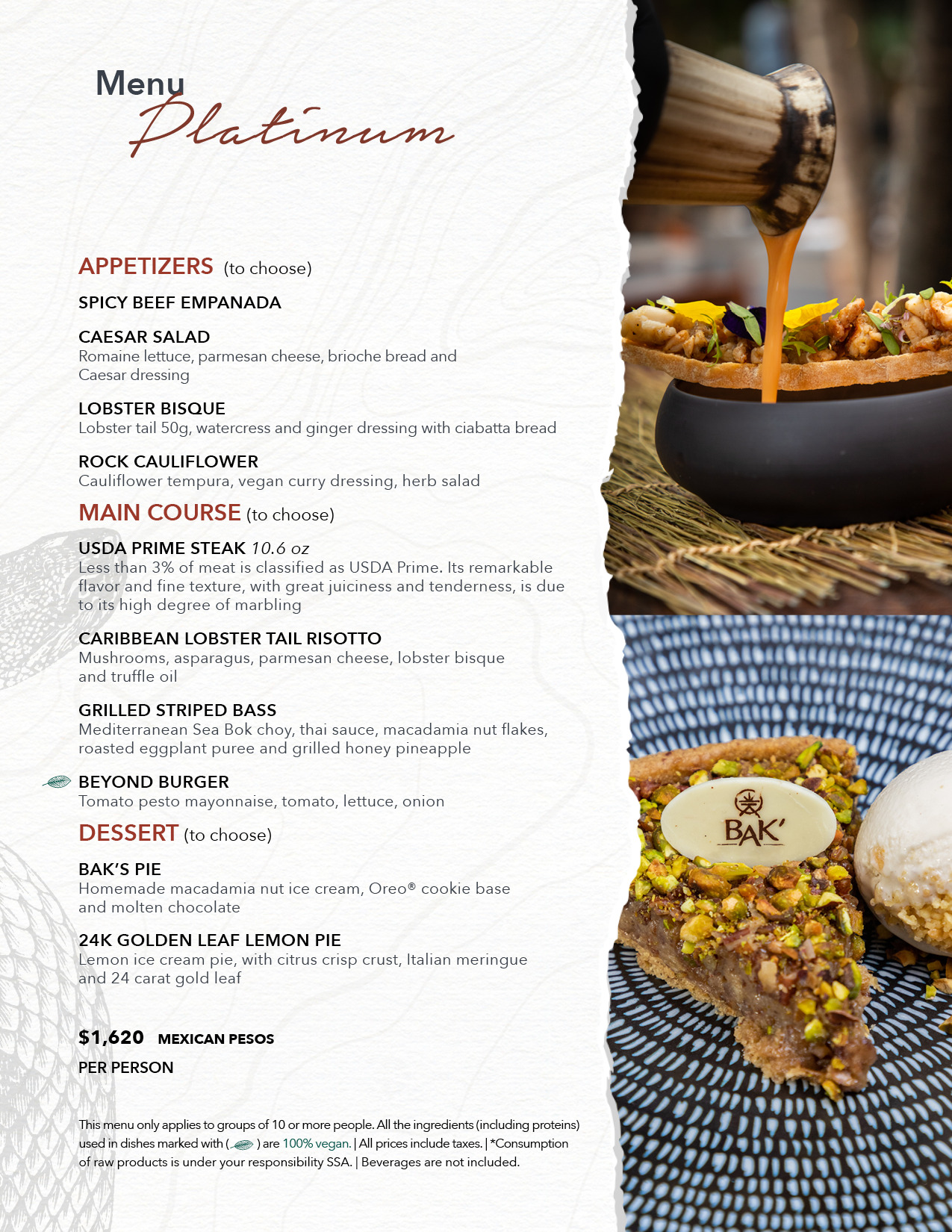 BAK’ offers a unique culinary experience in Tulum, featuring a curated selection of premium steaks and exotic, top-quality seafood. Each dish is crafted with expert techniques, fresh ingredients, and a creative approach that celebrates the flavors of land and sea. BAK’ is the perfect destination for a memorable bachelorette or bachelor dinner in Tulum’s hotel zone.