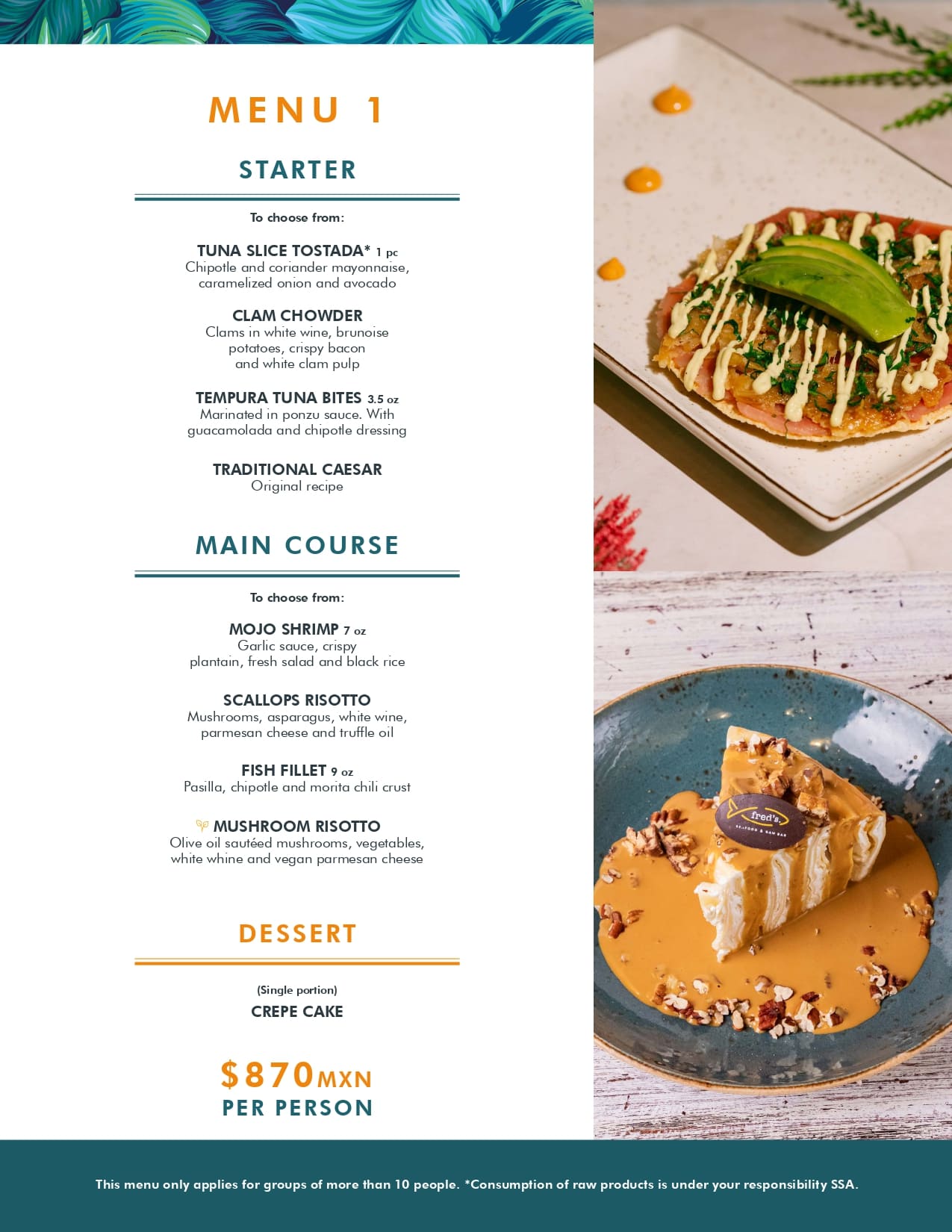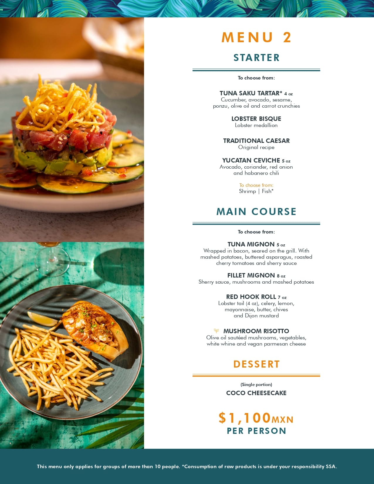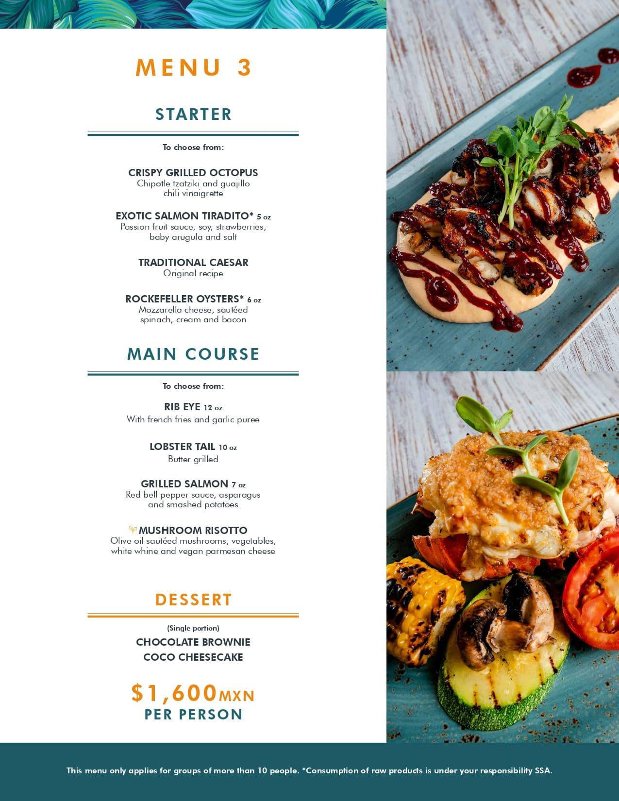 Our specialty is the cuisine of the sea, we have a wide variety of seafood from all over the world and we are the only restaurant in Cancun where lobster is prepared in 7 different ways.